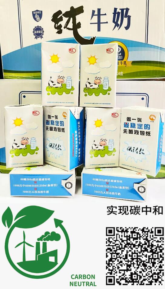 為響應(yīng)集團(tuán)“雙碳”戰(zhàn)略,APP(中國)大紙事業(yè)部第一時(shí)間構(gòu)建并完善碳排放管理體系,截至目前,旗下金東、金海、寧波、金桂、山東博匯、江蘇博匯均已完成ISO14064認(rèn)證,碳排放管理能力大幅提升。并借碳達(dá)峰碳中和重大宣示三周年之際,在第六屆進(jìn)博會(huì)集中重磅推出全新碳中和系列產(chǎn)品,主要包括:“零碳無菌液體包裝紙板、零碳食品級(jí)涂布?、零碳膠版印刷紙、零碳復(fù)印紙”。 零碳無菌液體包裝紙板 零碳無菌液體包裝紙板,具有良好的挺度、柔韌性,后加工性能優(yōu),穩(wěn)定的抗乳酸、抗雙氧水邊滲性能,能夠輕松滿足無菌液體食品包裝紙的質(zhì)量要求。 作為最高級(jí)別的食品包裝用紙板,它可廣泛應(yīng)用于牛奶、酸奶、果汁制品等液體包裝領(lǐng)域。