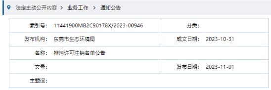 近日,東莞市生態環境局發布了多則《排污許可注銷名單公告》。