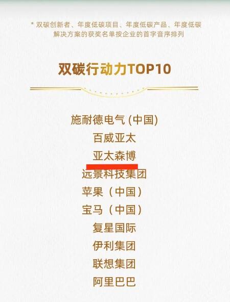 12月7日,由南方周末發起的首屆雙碳行動者大會在北京舉辦。大會邀請國家氣候戰略中心、生態環境部環境與經濟政策研究中心、雙碳領域專家、學者以及企業等各方代表,切實討論雙碳議題,探索有效應對氣候變化的途徑。大會頒發了年度雙碳行動者榮譽,亞太森博憑借在綠色低碳高質量發展方面的優異表現,榮登中國企業“雙碳行動力TOP10”,并取得第3名的好成績。 南方周末中國企業社會責任研究中心于2022年發起“中國企業雙碳行動力”調研項目,并啟動雙碳行動者榜單評選,旨在挖掘雙碳領跑者及創新者,樹立可持續企業、項目、產品、解決方案的標桿。2023年企業雙碳行動力評價體系包含領導力、減排力、創新力、協調力等維度,參考國際通行的雙碳指南、指標體系,并得到CDP的技術支持,經過充分調研和分析發布了2023年中國企業雙碳行動力榜單。