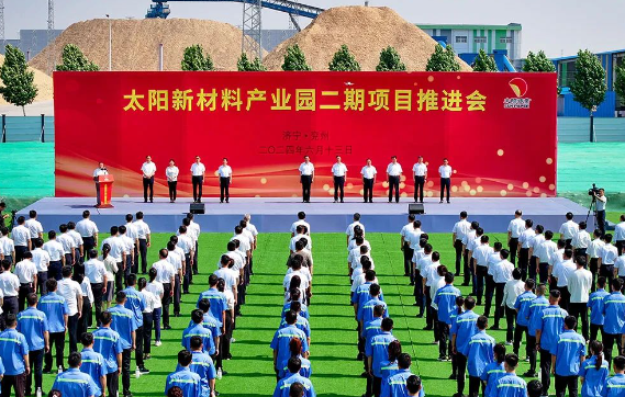 6月13日上午,太陽新材料產業園二期項目現場推進會召開。濟寧市委書記林紅玉出席并宣布項目開工,濟寧市委副書記、市長于永生講話,濟寧市人大常委會主任王宏偉出席。公司董事長、總經理李洪信出席并介紹項目情況。濟寧市委常委、秘書長董波主持。濟寧市領導張勝明、謝成海,兗州區委書記王慶,區委副書記、區長王營出席。