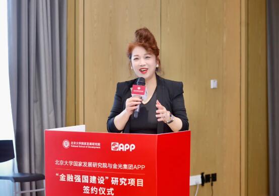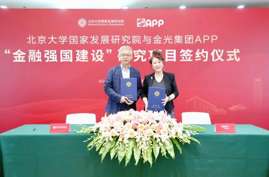 現(xiàn)場,金光集團(tuán)APP(中國)副總裁翟京麗與北京大學(xué)國家發(fā)展研究院院長黃益平教授,共同簽署了“金融強(qiáng)國建設(shè)”研究項目合作協(xié)議。合作雙方還就未來多層次、多領(lǐng)域合作展開密切交流。