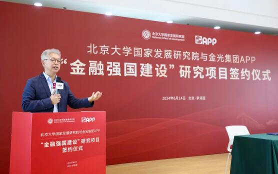 北京大學(xué)國家發(fā)展研究院院長黃益平教授從三個方面展開對雙方合作的美好愿景。第一,黃益平教授提到金光集團(tuán)董事長黃志源先生及集團(tuán)具有家國情懷,這與國家發(fā)展研究院的文化非常契合。第二,金融強(qiáng)國建設(shè)包含方方面面,國家發(fā)展研究院將從各個角度,舉全院之力開展研究。第三,黃益平教授感謝金光集團(tuán)APP一直以來的支持,并表示雙方將進(jìn)一步進(jìn)行資源互補(bǔ)。