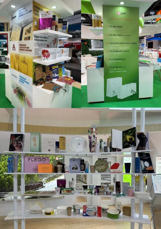 APPGlobal大紙事業部CEO王樂祥先生 在展會會見中外大型采購商、品牌商高層 現場,APP展臺展出的零塑防油涂布食品卡OPB、零塑未涂布食品級紙杯紙EPP、食品級涂布牛卡CBKB、雙膠紙、熱敏紙等多款明星產品,以其卓越品質和獨特魅力吸引了眾多參觀者駐足觀賞和交流,贏得了廣泛的關注與好評!