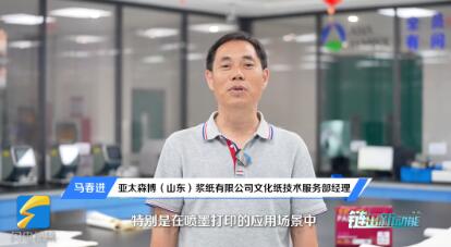 亞太森博(山東)漿紙有限公司企業資訊與可持續發展總監許廣利:別小看我手里拿著一些小小的木片,它可是坐著輪船飄洋過海從國外進口的,它是我們生產木漿的主要原料。我們這條生產線以100%人工種植林纖維作為原料,來生產雙膠紙、復印紙等多種文化用紙,可滿足市場對綠色低碳、高標準環保高端紙品的需求,我們每用三張高端復印紙就有一張來自于亞太森博。