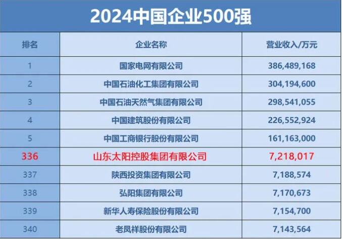 9月11日,在2024中國(guó)500強(qiáng)企業(yè)高峰論壇上,中國(guó)企業(yè)聯(lián)合會(huì)、中國(guó)企業(yè)家協(xié)會(huì)發(fā)布“2024中國(guó)企業(yè)500強(qiáng)”榜單。其中,公司控股股東山東太陽(yáng)控股集團(tuán)有限公司位列“2024中國(guó)企業(yè)500強(qiáng)”第336位,彰顯了太陽(yáng)控股培育和發(fā)展新質(zhì)生產(chǎn)力、推進(jìn)綠色低碳高質(zhì)量發(fā)展的杰出成效。