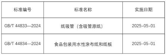 2024年10月6日,國家市場監(jiān)督管理總局(國家標(biāo)準(zhǔn)化管理委員會)發(fā)布2024年第24號公告,批準(zhǔn)發(fā)布《水泥壓蒸安定性試驗方法》等328項國家標(biāo)準(zhǔn)和3項國家標(biāo)準(zhǔn)修改單,其中包括《紙吸管(含吸管原紙)》《食品包裝用水性涂布紙和紙板》2項造紙領(lǐng)域國家標(biāo)準(zhǔn),具體信息如下。
