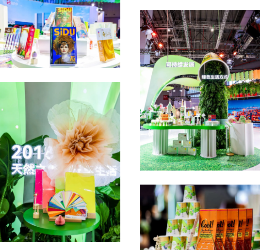 金光集團APP展臺引來觀眾駐足圍觀 除兩款升級展品外,APP王牌產品Cast Coated Arcadia 2000 & Concorde 高級涂布紙板、Golden Coin Embossed Brief Card壓紋紙、食品級防油紙、食品級紙吸管專用紙、高平滑食品級牛皮紙等在進博舞臺同樣吸引了大量興致勃勃的觀眾,加入到這段綠色旅程中來。