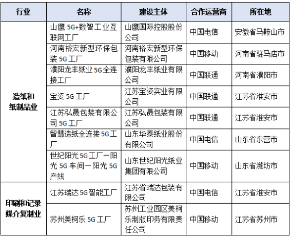 經大致統計,在此次擬核定的400個5G工廠項目名單中,涉及到印刷、包裝、造紙行業的企業具體如下: