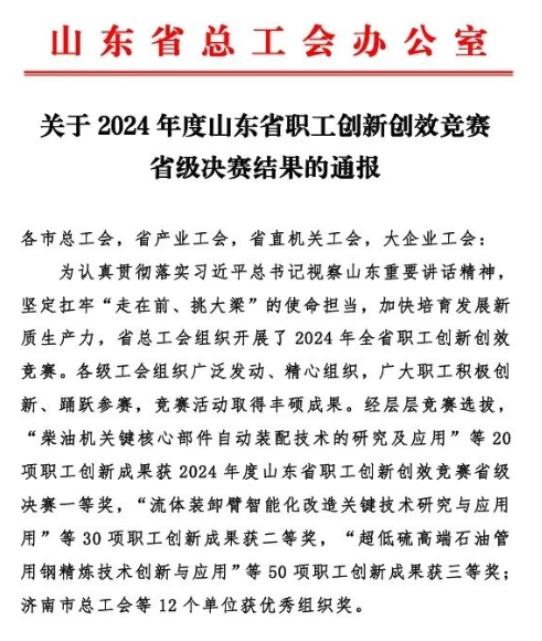 近日,山東省總工會公布了《關于2024年度山東省職工創新創效競賽省級決賽結果的通報》,公司參賽項目“降低漿線漂白段二氧化氯用量”經過多輪評審和答辯,最終脫穎而出,成功榮獲三等獎。
