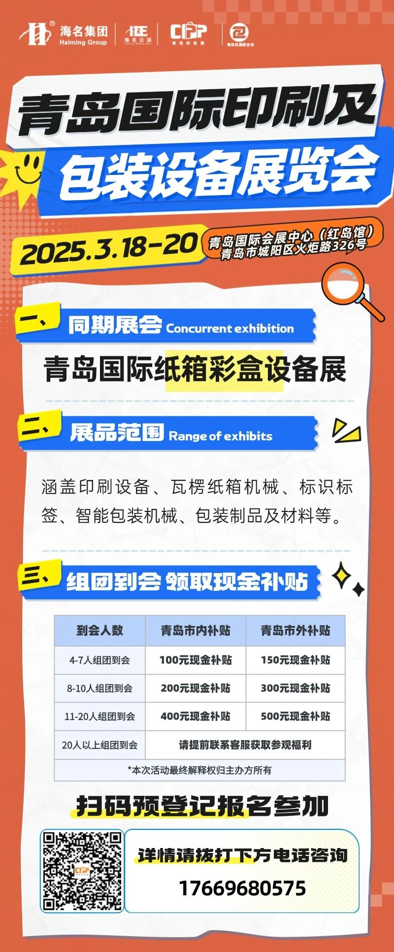 展會(huì)介紹 2025海名·第三屆青島國際印刷及包裝設(shè)備展覽會(huì) 同期展會(huì):青島國際紙箱彩盒設(shè)備展覽會(huì) 展會(huì)時(shí)間:2025年3月18-20日 展會(huì)地點(diǎn):青島國際會(huì)展中心(紅島館)-城陽區(qū)火炬路326號(hào) 2025海名·第三屆青島國際印刷及包裝設(shè)備展覽會(huì)將覆蓋印刷包裝完整的上下游產(chǎn)業(yè)鏈,涵蓋印刷設(shè)備、瓦楞紙箱/彩盒機(jī)械、標(biāo)識(shí)標(biāo)簽、智能包裝機(jī)械、包裝制品及材料、軟包裝設(shè)備等全新題材,幫助行業(yè)企業(yè)找到新的發(fā)展機(jī)遇。屆時(shí),青島展將以“創(chuàng)新突破、融合、發(fā)展”為主題,呈現(xiàn)印包制造全產(chǎn)業(yè)鏈的新理念、新產(chǎn)品和新技術(shù)。重點(diǎn)關(guān)注智能制造、工業(yè)4.0、創(chuàng)新包裝以及減塑降排與可持續(xù)發(fā)展等熱點(diǎn)話題,并為全球展商和買家搭建“智”造升級(jí)的對(duì)接平臺(tái)。