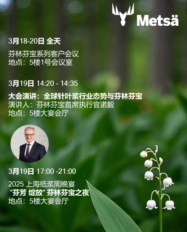又一個三月的第三周即將開啟,全球漿紙行業的目光再次聚焦一年一度的上海紙漿周。我們誠摯邀請您參加由芬林芬寶舉辦的系列客戶會議和特別活動,共同探討紙漿市場的前景與合作機遇。本次紙漿周活動將在上海雅居樂萬豪侯爵酒店舉辦。 在此期間,您將了解芬林芬寶最新的紙漿廠運營動態和供應情況,并探討全球經濟發展現狀和趨勢對紙漿市場的影響。此外,我們將討論如何進一步加強與客戶的合作,支持業務發展,分享成功案例和最佳實踐,促進合作共贏。最后,我們還將更新關于可持續性和環保政策的最新進展,并探討EUDR等政策對紙漿行業的影響。 我們期待您的蒞臨,共同探討紙漿市場的未來發展機遇!