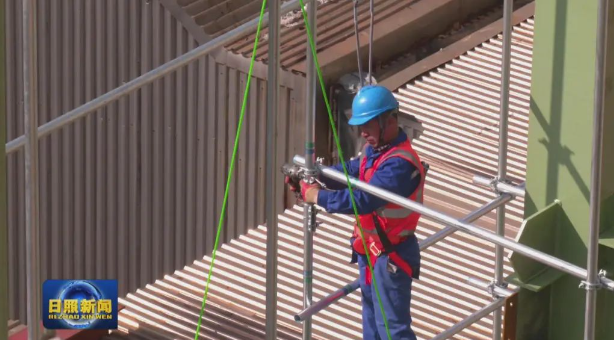 在亞太森博(山東)漿紙有限公司,工人們正在逐步將兩個脫硝倉的接口連接到一起,這是亞太森博二期堿爐脫硝節能設備更新技改項目的重要內容。