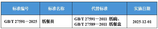近日,國家市場監督管理總局(國家標準化管理委員會)發布2025年第13號公告,批準發布《產品幾何技術規范(GPS) 圓錐的錐度與錐角系列》等306項推薦性國家標準,其中包括造紙領域國家標準《紙餐具》,具體信息如下。