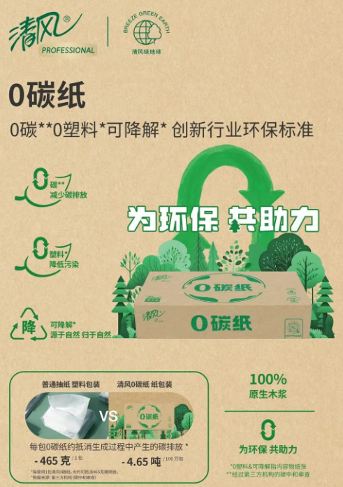 “清風(fēng)零碳紙”亮相碳博會(huì) “清風(fēng)商用”綠色旗艦產(chǎn)品“清風(fēng)零碳紙”首次亮相上海國(guó)際碳中和博覽會(huì),憑借其綠色環(huán)保的理念獲得政企辦公、物業(yè)、交通、消費(fèi)品行業(yè)以及綠色環(huán)保領(lǐng)域人士的普遍好評(píng)。 關(guān)于“清風(fēng)零碳紙” 清風(fēng)零碳紙,從原材料的選擇到生產(chǎn)工藝的優(yōu)化,每一個(gè)環(huán)節(jié)都經(jīng)過(guò)精心設(shè)計(jì),以確保產(chǎn)品的碳足跡最小化。它經(jīng)過(guò)第三方碳中和審核,每盒抵消生產(chǎn)過(guò)程中產(chǎn)生的碳排放465g,從包裝到紙張,都踐行環(huán)保。清風(fēng)零碳紙不僅在碳排放上實(shí)現(xiàn)了突破,還在內(nèi)容物紙張上踐行了零塑和可降解的環(huán)保理念。