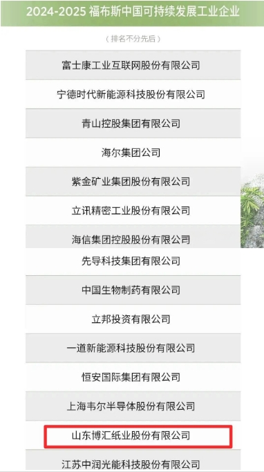 2025年6月25日,“2024-2025福布斯中國可持續發展工業企業” 評選結果正式發布,博匯紙業(600966)憑借在可持續發展領域的創新實踐及優異成績成為40家主評選企業之一。該評選旨在觀察中國工業企業在2022年福布斯中國首次推出該領域評選之后兩年來的表現,并探究工業企業在當前充滿挑戰的世界經濟格局下,面對更加嚴格的全球生態保護和治理要求時的應對之道。GBRC全球化商業研究院作為戰略合作伙伴、TÜV南德作為學術支持機構共同參與了此次評選。