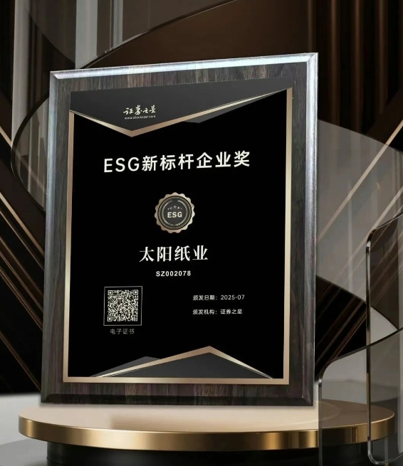 近日,上海證券之星第三屆ESG新標(biāo)桿企業(yè)評選結(jié)果揭曉,太陽紙業(yè)憑借在環(huán)境、社會(huì)和治理領(lǐng)域的卓越實(shí)踐,榮獲“ESG新標(biāo)桿企業(yè)獎(jiǎng)”。