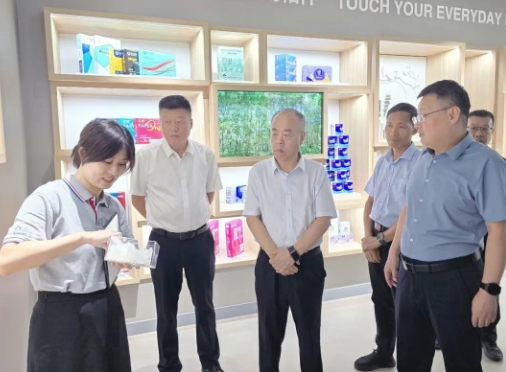 訪問期間,公司管理層在展廳向客人介紹了公司“漿紙纖一體化”全產業鏈運作模式及發展歷程。
