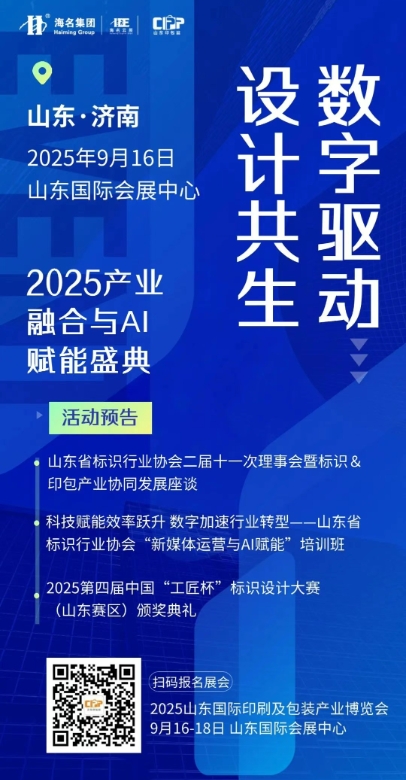 2025產業融合與AI賦能盛典 山東省標識行業協會二屆十一次理事會 2025中國山東印刷包裝峰會 2025山東包裝企業家沙龍活動 中國工匠杯標識設計大賽(山東賽區)頒獎典禮 B2B互聯網賦能及包裝聯合智能印刷技術論壇