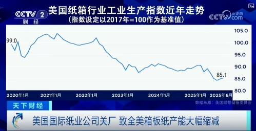 近日,央視財經(jīng)頻道《正點財經(jīng)》欄目報道稱,美國紙箱需求出現(xiàn)明顯下滑,紙箱制造商開始大規(guī)模關(guān)廠,行業(yè)產(chǎn)能可能在短短幾個月內(nèi)銳減近1成,分析人士指出,這或許預(yù)示著美國消費的減弱。 報道指出,美國最大的紙箱制造商之一國際紙業(yè)宣布,在9月底關(guān)閉兩家工廠,將導(dǎo)致約1100名計時工和受薪員工失業(yè)。這兩家紙廠永久停產(chǎn)后,美國箱板紙產(chǎn)能將在8個月內(nèi)縮減9%,這一縮減幅度幾乎是2009年經(jīng)濟衰退期間產(chǎn)能降幅的2倍。
