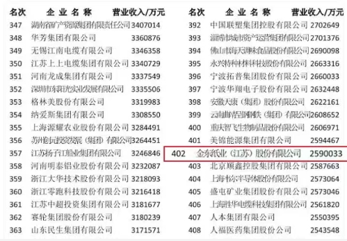 鎮江有3家企業成功入選。其中,位于鎮江經開區的金東紙業(江蘇)股份有限公司憑借259億元的營業收入,位列榜單第402位。