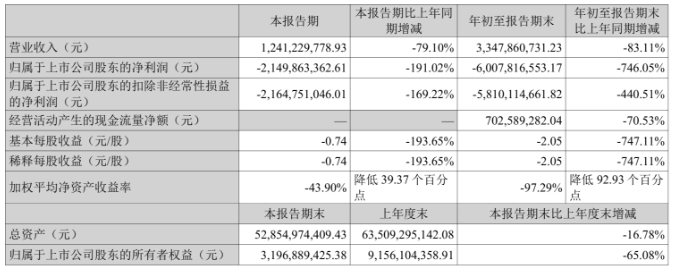 近日,ST晨鳴發(fā)布2025年第三季度報告,前三季度公司實現營業(yè)收入33.48億元,同比下降83.11%;歸屬于上市公司股東的凈利潤為虧損60.08億元,同比轉虧。