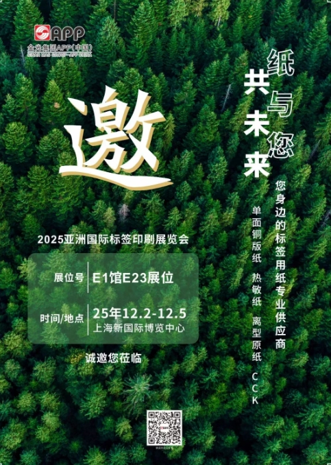 APP(中國)誠邀標簽印刷企業、行業伙伴、媒體朋友及廣大觀眾于展會期間光臨 E1館E23展位,深入了解APP高端紙品在標簽領域的創新應用,共同探討綠色造紙與可持續發展路徑,F場將有專業團隊為您提供產品咨詢與合作洽談服務!