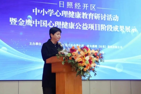 活動伊始,日照經(jīng)開區(qū)社會事業(yè)局黨委書記、局長陳玲在致辭中表示,日照經(jīng)開區(qū)是該項目全國首試點。亞太森博(山東)漿紙有限公司積極履行社會責任擔當,投入大量人力、物力、財力,聯(lián)合經(jīng)開區(qū)打造全國心理健康教育樣板。過去一年,項目從藍圖變?yōu)楝F(xiàn)實,成為提升區(qū)域教育質(zhì)效的“關(guān)鍵一招”。項目的深入實施,不僅讓我區(qū)31名心理健康教育教師、1000余名教師的專業(yè)能力得到質(zhì)的提升,更讓全區(qū)學生在健康向上的心理氛圍中成長,為家庭幸福、校園和諧筑牢了心理根基。