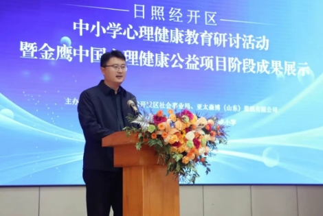為深入貫徹立德樹人根本任務(wù),筑牢區(qū)域中小學心理健康教育防線,提升心理健康教育教師專業(yè)素養(yǎng),促進學生身心和諧全面發(fā)展,12月9日,日照經(jīng)濟技術(shù)開發(fā)區(qū)中小學心理健康教育研討活動暨金鷹中國心理健康公益項目階段成果展示活動在連云港路小學召開。中國社會工作聯(lián)合會社會心理服務(wù)工作委員會、日照市教育局、經(jīng)開區(qū)社會事業(yè)局、亞太森博(山東)漿紙有限公司有關(guān)負責人以及經(jīng)開區(qū)68位中小學心理健康教育專兼職教師,經(jīng)開區(qū)各中小學主要負責人、部分班主任等150余人參加活動。