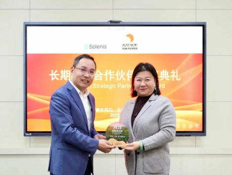 索理思向太陽(yáng)紙業(yè)頒發(fā)“長(zhǎng)期戰(zhàn)略合作伙伴獎(jiǎng)”