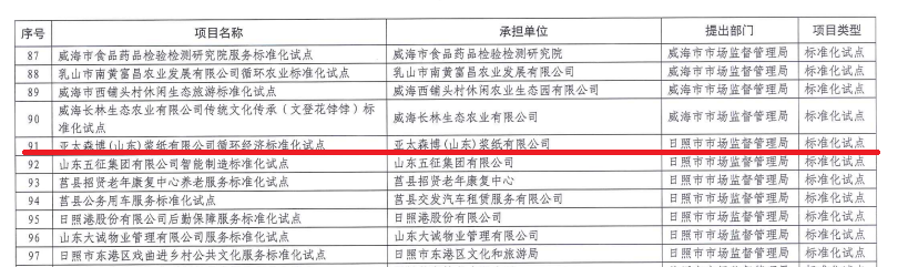 12月19日,山東省市場監督管理局公布2025年度山東省標準化試點項目建設完成情況,亞太森博(山東)漿紙有限公司承擔的循環經濟標準化試點項目成功通過驗收,標志著公司在循環經濟領域的標準化建設工作取得重要階段性成果,為行業綠色低碳發展樹立了標準化標桿。
