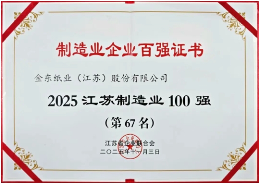 在新時(shí)代制造業(yè)高質(zhì)量發(fā)展浪潮中,APP(中國(guó))旗下企業(yè)正以創(chuàng)新為翼、以綠色為基、以智造為脈,勇立高質(zhì)量發(fā)展的潮頭。近日,旗下金東紙業(yè)、金桂漿紙、山東博匯相繼獲得權(quán)威認(rèn)可,彰顯其在質(zhì)量提升、智能制造與可持續(xù)發(fā)展上的卓越成效。 彰顯實(shí)力 金東紙業(yè)上榜“江蘇制造業(yè)百?gòu)?qiáng)企業(yè)”榜單 近日,金東紙業(yè)成功入選由江蘇省企業(yè)聯(lián)合會(huì)發(fā)布的“2025江蘇制造業(yè)百?gòu)?qiáng)企業(yè)”榜單。據(jù)悉,該榜單入圍門(mén)檻首次突破百億大關(guān),彰顯以金東紙業(yè)為代表的江蘇制造業(yè)強(qiáng)勁發(fā)展勢(shì)頭。