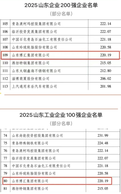 近年來(lái),廣西金桂以“四輪驅(qū)動(dòng)林漿紙一體化”質(zhì)量管理模式實(shí)現(xiàn)高質(zhì)量發(fā)展。2024年,營(yíng)收位列中國(guó)造紙十強(qiáng)行列,產(chǎn)品A級(jí)率達(dá)99.20%,并開(kāi)發(fā)了4項(xiàng)填補(bǔ)國(guó)內(nèi)空白的產(chǎn)品,共獲40多項(xiàng)專利;近年來(lái)先后榮獲“欽州市市長(zhǎng)質(zhì)量獎(jiǎng)”、“廣西主席質(zhì)量獎(jiǎng)提名獎(jiǎng)”、“廣西工業(yè)企業(yè)質(zhì)量信譽(yù)承諾企業(yè)”、“廣西質(zhì)量提升示范企業(yè)”等多項(xiàng)質(zhì)量榮譽(yù)。 卓越成績(jī) 山東博匯榮登“山東企業(yè)200強(qiáng)榜單” 12月15日,山東省企業(yè)聯(lián)合會(huì)、山東省企業(yè)家協(xié)會(huì)發(fā)布最新榜單,山東博匯憑借卓越的綜合實(shí)力與綠色發(fā)展成效,成功躋身2025山東企業(yè)200強(qiáng)和山東工業(yè)企業(yè)100強(qiáng),為推動(dòng)區(qū)域經(jīng)濟(jì)高質(zhì)量發(fā)展樹(shù)行業(yè)標(biāo)桿。