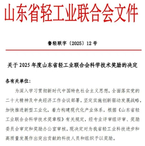 山東省輕工業聯合會科學技術獎是經山東省科技廳批準設立的常設性年度科技獎勵,專門表彰在山東省輕工業領域科學研究、技術創新與開發、科研成果轉化及高新技術產業化中作出突出貢獻的組織與個人,是行業內極具權威性與影響力的重要獎項。此次獲獎,既是行業對公司在木質纖維素紙基材料領域技術實力的高度認可,也標志著公司科技創新能力再獲權威認證。