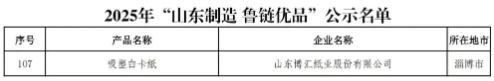 該評(píng)選旨在表彰在技術(shù)先進(jìn)性、市場(chǎng)潛力及產(chǎn)業(yè)帶動(dòng)作用方面表現(xiàn)突出的高新技術(shù)產(chǎn)品。在研發(fā)過(guò)程中,金海漿紙團(tuán)隊(duì)通過(guò)優(yōu)化核心技術(shù)手段,實(shí)現(xiàn)了產(chǎn)品在印刷適應(yīng)性、色彩還原表現(xiàn)力及環(huán)保性能指標(biāo)上的全面提升。這些突破使產(chǎn)品歷經(jīng)嚴(yán)格評(píng)審,從眾多參評(píng)產(chǎn)品中脫穎而出,體現(xiàn)了金海漿紙?jiān)谠旒埣夹g(shù)研發(fā)與高端產(chǎn)品創(chuàng)新方面的深厚積累,也標(biāo)志著其科技創(chuàng)新與產(chǎn)品品質(zhì)獲得權(quán)威認(rèn)可。 山東博匯吸塑白卡紙入選2025年“山東制造 魯鏈優(yōu)品”名單(第一批) 在山東省工業(yè)和信息化廳發(fā)布的2025年“山東制造 魯鏈優(yōu)品”名單(第一批)中,山東博匯旗下吸塑白卡紙,憑借卓越品質(zhì)與創(chuàng)新實(shí)力榮耀入選。