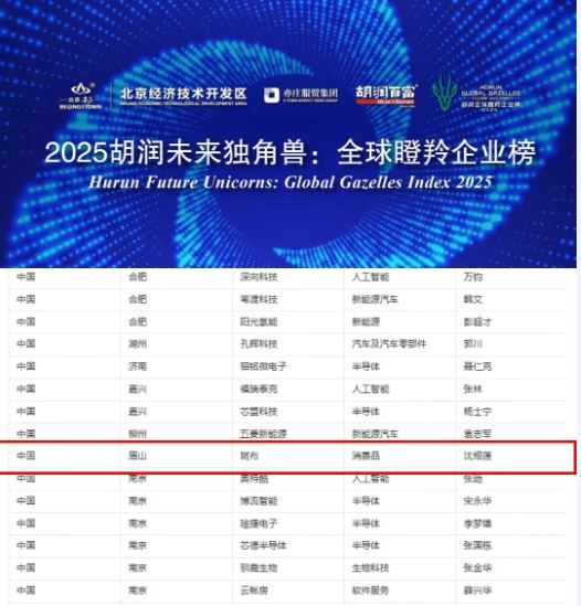 斑布榮登《2025胡潤全球瞪羚企業榜》