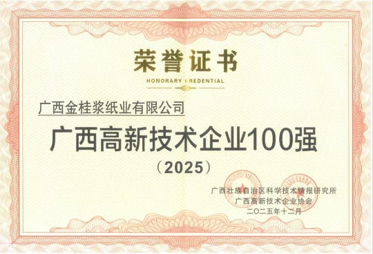 2026年1月30日,廣西高企百強(qiáng)系列榜單暨廣西科技情報研究所2025年度成果發(fā)布會在南寧舉行,會上正式發(fā)布“2025年廣西高新技術(shù)企業(yè)百強(qiáng)”等系列榜單,廣西金桂漿紙業(yè)有限公司憑借資源與環(huán)境技術(shù)領(lǐng)域的優(yōu)秀表現(xiàn)再度上榜,這也是金桂連續(xù)第五年獲評“廣西高企百強(qiáng)”稱號,持續(xù)彰顯其在科技創(chuàng)新能力、產(chǎn)業(yè)引領(lǐng)作用及高質(zhì)量發(fā)展水平方面的突出實(shí)力與穩(wěn)固地位。