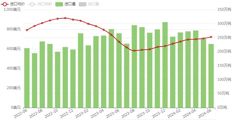 闊葉漿2023年進(jìn)口量為1635.31萬(wàn)噸,較2022年的1279.63萬(wàn)噸,同比增長(zhǎng)27.80,進(jìn)口均價(jià)為610.47美元/噸,較2022年的703.52美元/噸,下降13.23%。2024年1-6月份,進(jìn)口量為778.82萬(wàn)噸,進(jìn)口均價(jià)為623.75美元/噸。
