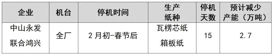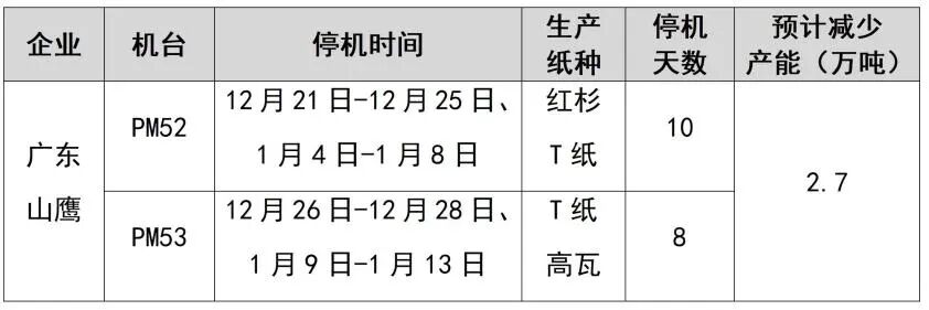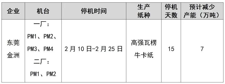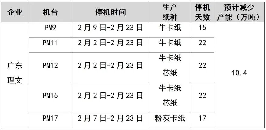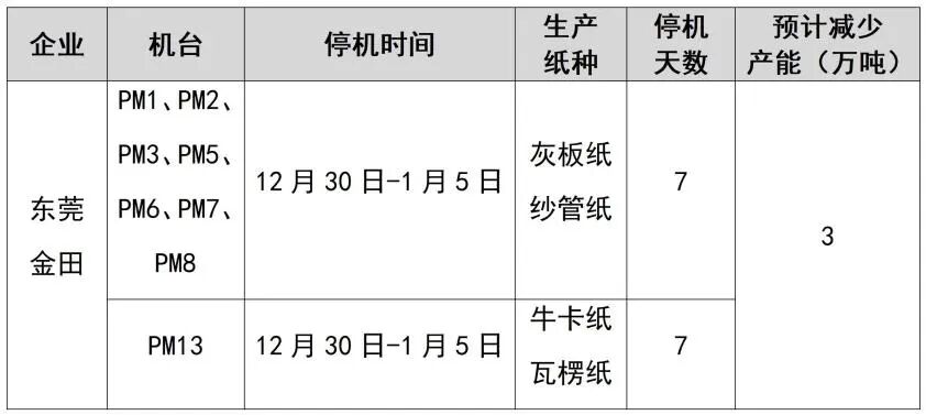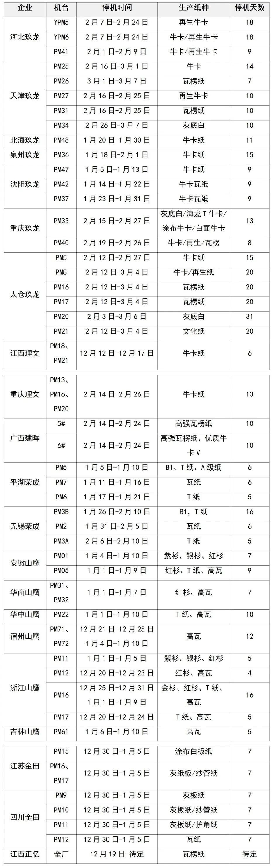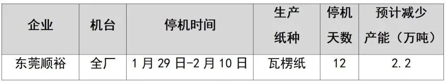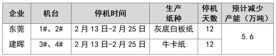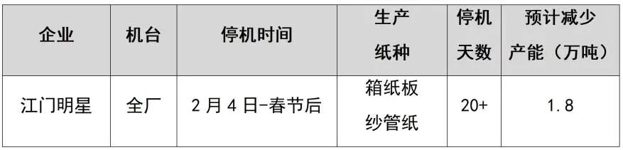 紙廠停機(jī)計(jì)劃匯總(2026-01-13)