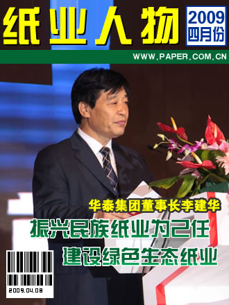 李建華同志作為華泰集團的帶頭人,懷著對事業(yè)孜孜不倦的執(zhí)著追求,帶領全體員工艱苦奮斗、頑強拼搏、勇于創(chuàng)新、無私奉獻,使一個僅以56萬元資產(chǎn)起家的小造紙廠,一舉發(fā)展成為擁有資產(chǎn)總值55億元,年生產(chǎn)機制紙能力60萬噸,集造紙、化工、印刷、熱電、商貿(mào)于一體的國家特大型企業(yè)。