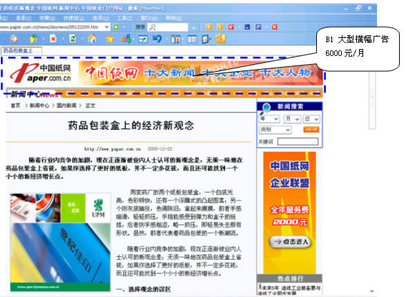 中國紙網品牌欄目頂部,深受喜愛的廣告形式之一,大面積的發布空間投放于頁面的頂部,產生很強宣傳效果。適合于品牌、形象宣傳、市場推廣及行業展會等大型活動。